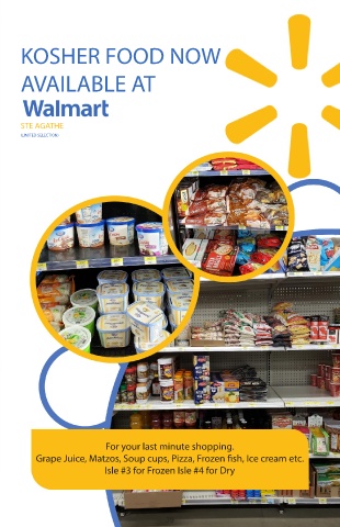 KOSHER FOOD NOW AVAILABLE AT STE AGATHE (LIMITED SELECTION) For your last minute shopping. Grape Juice, Matzos, Soup cups, Pizza, Frozen sh, Ice cream etc. Isle #3 for Frozen Isle #4 for Dry 39