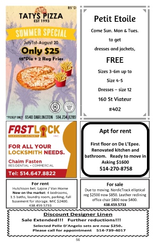 Hutchison bet. Lajoie / Van Horne Due to moving. NordicTrack elliptical