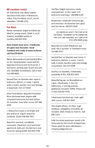 J. Mance/Fairmount 3 1/2 bright and included, $450. Ready to move in. 514-