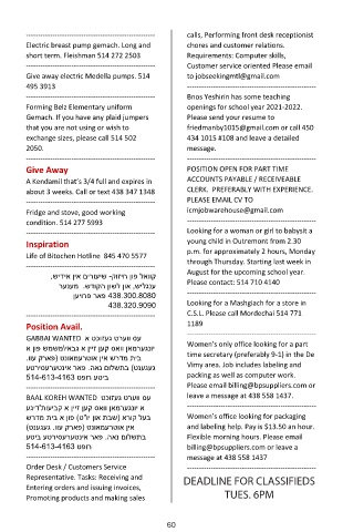 BAAL KOREH WANTED טכוזעג טרעוו סע leave a message at 438 558 1437.