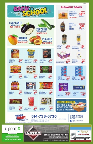 BLOWOUT DEALS ToSCHOOL SHAIMOS SERVICE ● ● We are not responsible for typographical errors. While supplies last. Discount Moving 514-223-8705 5999 Parc Ave www.artecplanchers.ca Ceramic // Vinyl // Hardwood // Laminate