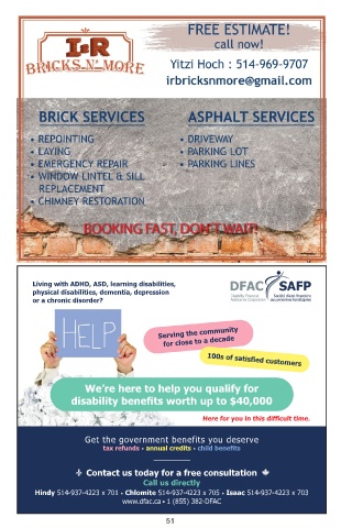 Hindy 514-937-4223 x 701 • Chlomite 514-937-4223 x 705 • Isaac 514-937-4223 x 703