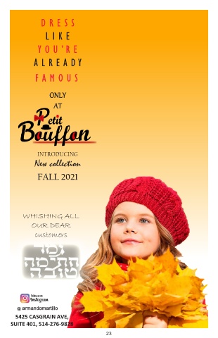 D R E S S L I K E Y O U ’ R E A L R E A D Y F A M O U S. ONLY AT INTRODUCING New collection FALL 2021 WHISHING ALL OUR DEAR customers @ armandomartillo 5425 CASGRAIN AVE, SUITE 401, 514-276-9828 23