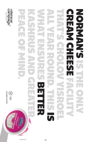 long story short. PEACE OF MIND. A product of USA WHAT ENSURES BETTER CREAM CHEESE FACILITY KASHRUS AND GREATER 13 ALL YEAR ROUND. THIS IS THAT’S CHOLOV YISROEL NORMAN’S IS THE ONLY dartmedia.us