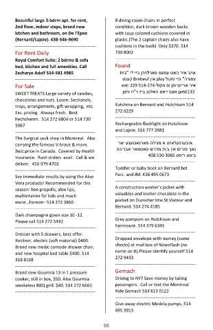hechsherim. 514 272 6804 or 514 730 ------------------------------------------------------