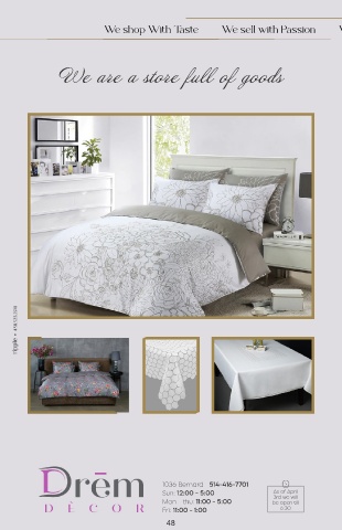 Sun: 12:00 - 5:00 As of April Linen sets, Accent pillows, Pillows, Duvet, Mattress pads, Kitchen towels, Bath