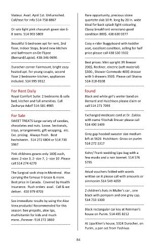 hechsherim. 514 272 6804 or 514 730 left at 5626 Hutchison- Gross on purim