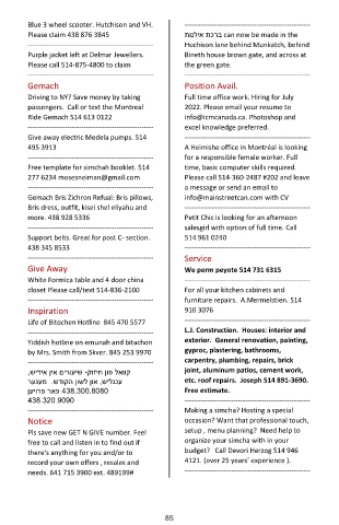 רענעמ .שדוקה ןושל ןוא ,שילגנע etc. roof repairs. Joseph 514 891-3690.