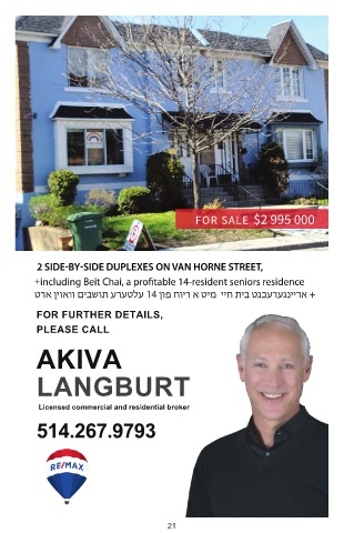 + FOR FURTHER DETAILS, PLEASE CALL AKIVA LANGBURT Licensed commercial and residential broker 514.267.9793 21