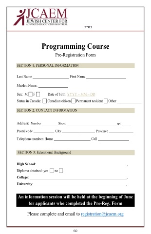 Please complete and email to registration@jcaem.org