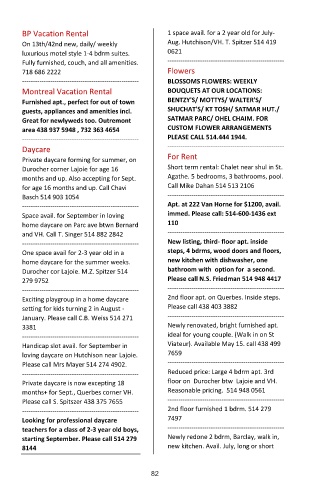 Montreal Vacation Rental BOUQUETS AT OUR LOCATIONS: