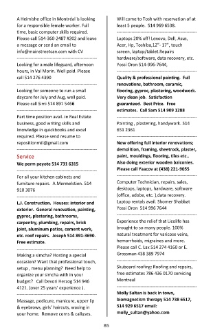 hours, in Val Morin. Well paid. Please ------------------------------------------------------