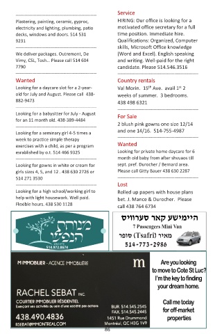 Looking for a seminary girl 4-5 times a and one 14/16. 514-755-4987