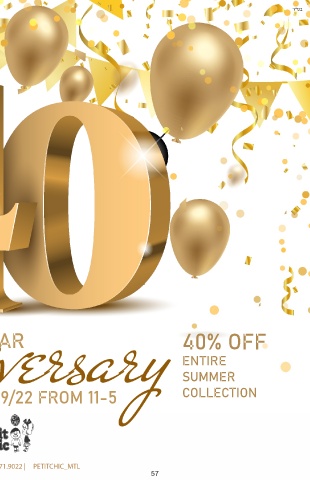 “ REFRESHMENTS YEAR 40% OFF FROM 1-5PM ENTIRE BALLOON ARTIST SUMMER FROM 1-5PM SUNDAY, MAY 29/22 FROM 11-5 COLLECTION 1046 BERNARD | 514.271.9022 | PETITCHIC_MTL 57