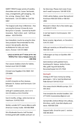 hechsherim. 514 272 6804 or 514 730 Hutchison 438 630 5958 or 438 932