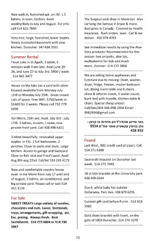 hechsherim. 514 272 6804 or 514 730 gate of 5903 Durocher. 514 274 3378