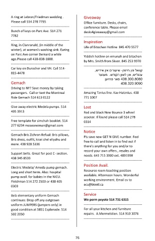 passengers. Call or text the Montreal Amazing Tznius line. Kav Hatznius. 438