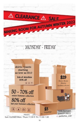 Sun. CLOSED Mon.- Thurs 11:30-5 Fri. 11:30-1:30 petitchic_mtl