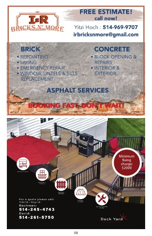 Minimum xing charge: $2000 Yiddish English RE N O VA TI ON S 58