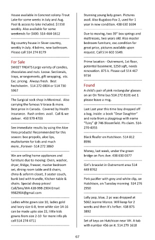 chocolates and nuts. Loose. Sectionals, renovation. 875 k. Please call 514 467