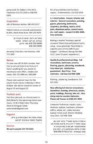 Yiddish hotline on emunah and bitachon joint, aluminum patios, cement work,
