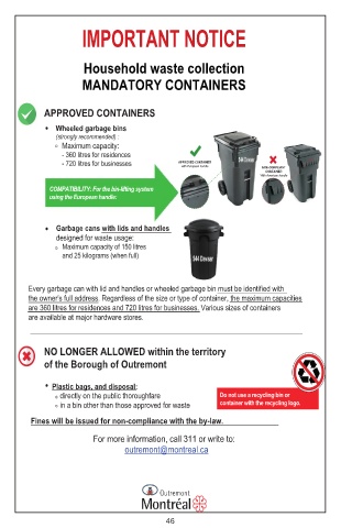 Every garbage can with lid and handles or wheeled garbage bin must be identified with