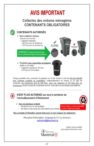 Chaque poubelle avec couvercle et poignées ou le bac roulant à ordures doit être identifié