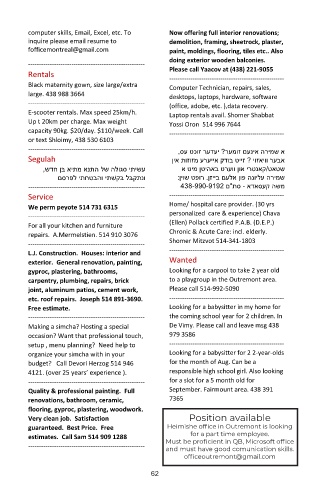 רענעמ .שדוקה ןושל ןוא ,שילגנע ------------------------------------------------------ Please call Yaacov at (438) 221-9055
