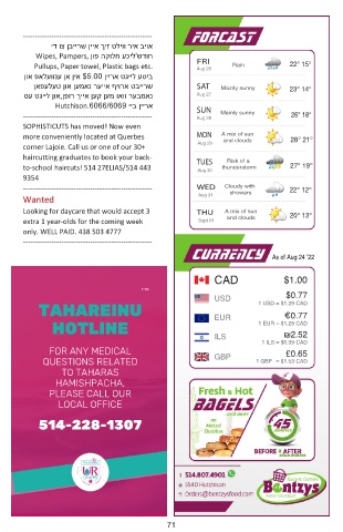 Please call Yaacov at (438) 221-9055 USD 1 USD = $1.29 CAD
