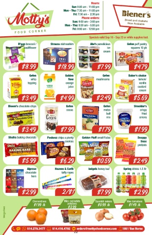Specials valid Sep 18 - Sep 23 or while supplies last.