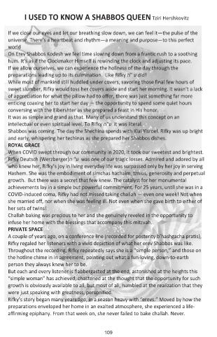 I USED TO KNOW A SHABBOS QUEEN Tziri Hershkovitz