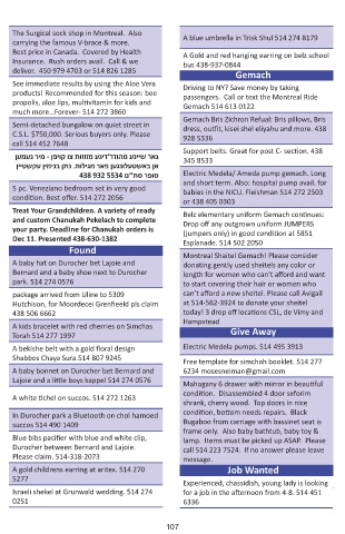 deliver. 450 979 4703 or 514 826 1285 Gemach