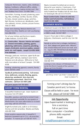 שפנ תמגע work, etc. roof repairs. Joseph 514 891-3690. 11, - aug.31. 845-799-0674,Email; booking@