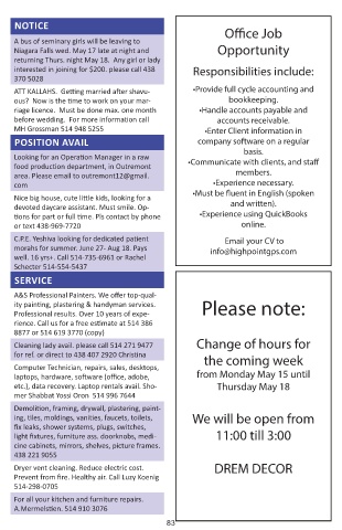 returning Thurs. night May 18. Any girl or lady work, etc. roof repairs. Joseph 514 891-3690.