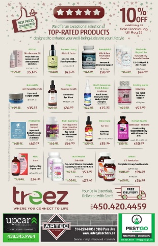 Sale Continuing till Aug 25 514-223-8705 5999 Parc Ave www.artecplanchers.ca MICE PROOFING & EXTERMINATING Ceramic // Vinyl // Hardwood // Laminate 514.224.8609 • Info@pestgo.ca
