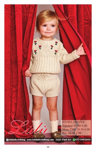 ד”סב Wishing a הבוט המיתחו הביתכ TO OUR CUSTOMERS & ALL OF KLAL YISROEL STORE HOURS Sunday: 11:00-5:00 Mon-Thu: 10:30-6:00 Fri: 10:30-2:00 lulukidsclothing www.lulukidsclothing.com 5421 Park Ave 877-799-5858 38