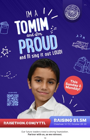 ה"ב This Sunday & Monday! SCAN HERE RAISING $1.5M RAISETHON.COM/YTTL Cheshvan 14-15 | October 29-30 Our future leaders need a strong foundation. Partner with us, as we reinvest. 10