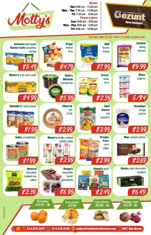 514.279.3477 514.416.4792 orders@mottysfoodcorner.com 1051 Van Horne