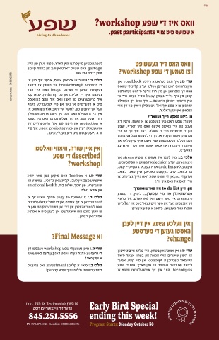 info� ר�מ �וא Testimonials �ר�ה ו� Early Bird Special