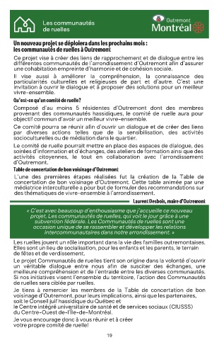 différentes communautés de l’arrondissement d’Outremont afin d’assurer