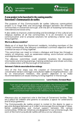 communities in Outremont borough, with the aim of fostering harmonious