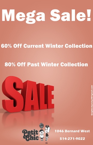 Mega Sale! 60% Off Current Winter Collection 80% Off Past Winter Collection Graphicsbyricky28@gmail.com 1046 Bernard West 514-271-9022 36