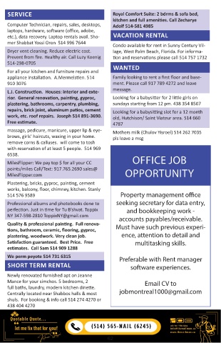 work, etc. roof repairs. Joseph 514 891-3690. old, Hutchison/ Saint Viateur area. 514 660