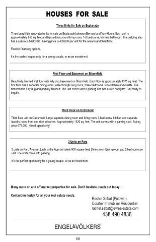 Three beautifully renovated units for sale on Esplanade between Bernard and Van-Horne. Each unit is