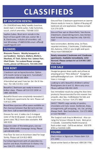 Ohel Chaim. For custom flower arrange- Bernard. Please contact Ari at 514 945 1287.