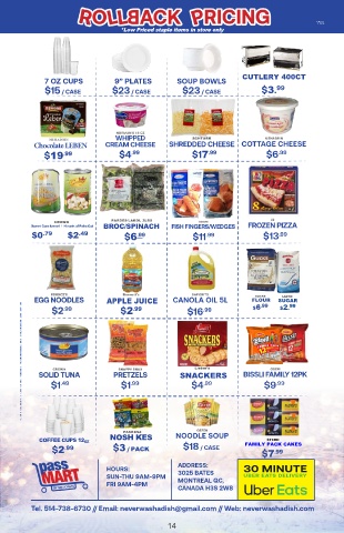 SUN-THU 9AM-9PM MONTREAL QC, UBER EATS DELIVERY