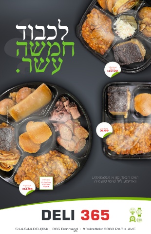 דובכל השמח .רשע $19.99 5 Sectional Square 3 Sectional $9.99 עקאמשעג א ןופ האנה טאה On the side Coleslaw הימעוט ישיש ליל עמיראוו 5 Sectional Pickles Soda Round $34.99 514.544.DELI(3354) • 365 Bernard • At Fooderie Market 6680 PARK AVE 25
