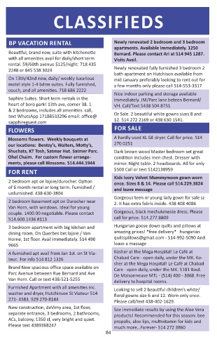 teur. For info 514 812 1326 Chabad Care - open daily, under the MK. Ko-