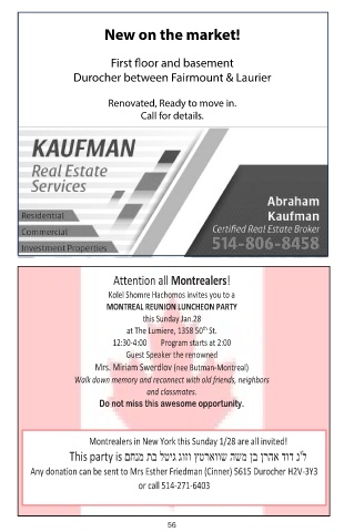 Any donation can be sent to Mrs Esther Friedman (Cinner) 5615 Durocher H2V-3Y3
