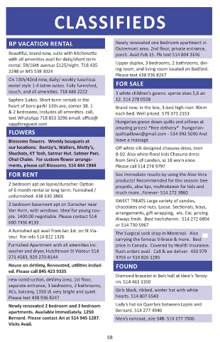 ple. 1400.00 negotiable. Please contact 514 Always fresh. Best hechsherim. 514 272 6804
